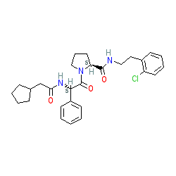 | SMILES | O=C(CC1CCCC1)N[C@H](C(=O)N1CCC[C@H]1C(=O)NCCc1ccccc1Cl)c1ccccc1 |
