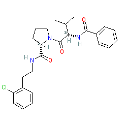 | SMILES | CC(C)[C@H](NC(=O)c1ccccc1)C(=O)N1CCC[C@H]1C(=O)NCCc1ccccc1Cl |