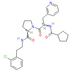 | SMILES | O=C(N[C@@H](Cc1cccnc1)C(=O)N1CCC[C@H]1C(=O)NCCc1ccccc1Cl)C1CCCC1 |
