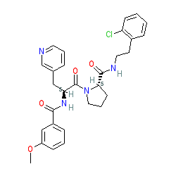 | SMILES | COc1cccc(C(=O)N[C@@H](Cc2cccnc2)C(=O)N2CCC[C@H]2C(=O)NCCc2ccccc2Cl)c1 |