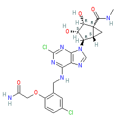 | SMILES | CNC(=O)[C@]12C[C@@H]1[C@@H](n1cnc3c(NCc4cc(Cl)ccc4OCC(N)=O)nc(Cl)nc31)[C@H](O)[C@@H]2O |