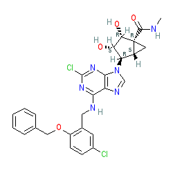 | SMILES | CNC(=O)[C@]12C[C@@H]1[C@@H](n1cnc3c(NCc4cc(Cl)ccc4OCc4ccccc4)nc(Cl)nc31)[C@H](O)[C@@H]2O |