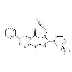 | SMILES | CC#CCn1c(N2CCC[C@@H](N)C2)nc2c1c(=O)n(CC(=O)c1ccccc1)c(=O)n2C |