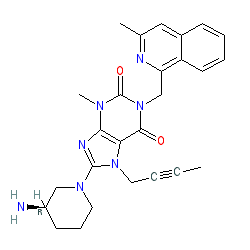 | SMILES | CC#CCn1c(N2CCC[C@@H](N)C2)nc2c1c(=O)n(Cc1nc(C)cc3ccccc13)c(=O)n2C |
