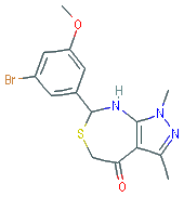 | SMILES | COc1cc(Br)cc(C2Nc3c(c(C)nn3C)C(=O)CS2)c1 |