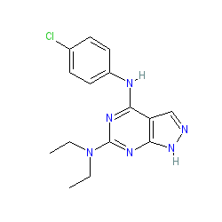 | SMILES | CCN(CC)c1nc(Nc2ccc(Cl)cc2)c2cn[nH]c2n1 |
