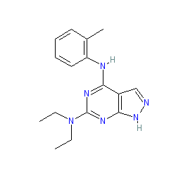 | SMILES | CCN(CC)c1nc(Nc2ccccc2C)c2cn[nH]c2n1 |