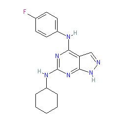 | SMILES | Fc1ccc(Nc2nc(NC3CCCCC3)nc3[nH]ncc23)cc1 |