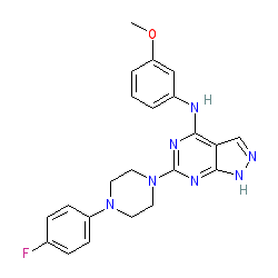 | SMILES | COc1cccc(Nc2nc(N3CCN(c4ccc(F)cc4)CC3)nc3[nH]ncc23)c1 |