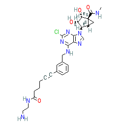| SMILES | CNC(=O)[C@@]12C[C@@H]1[C@@H](n1cnc3c(NCc4cccc(C#CCCCC(=O)NCCN)c4)nc(Cl)nc31)[C@H](O)[C@@H]2O |