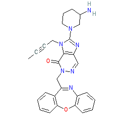 | SMILES | CC#CCn1c(N2CCCC(N)C2)nc2cnn(CC3=Nc4ccccc4Oc4ccccc43)c(=O)c21 |