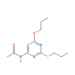 | SMILES | CCCOc1cc(NC(C)=O)nc(SCCC)n1 |