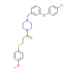 | SMILES | COc1ccc(SCCC(=O)N2CCN(Cc3cccc(Oc4ccc(Cl)cc4)c3)CC2)cc1 |